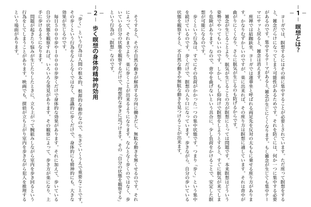 合理的に歩けなければ必要な移動もかなわないし、当然「瞑想」にもならないのだ。