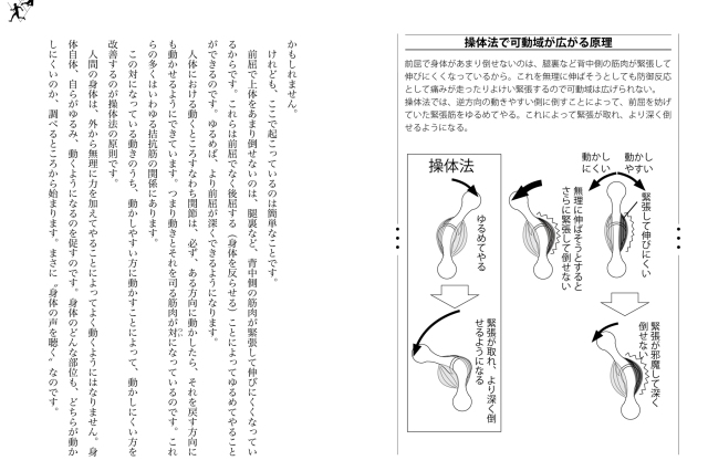 身体の“動きやすい方向”へ動かすことによって、“動きにくい方”を改善するという無理がなく画期的な方法により、身体改善法として広く普及してきました。