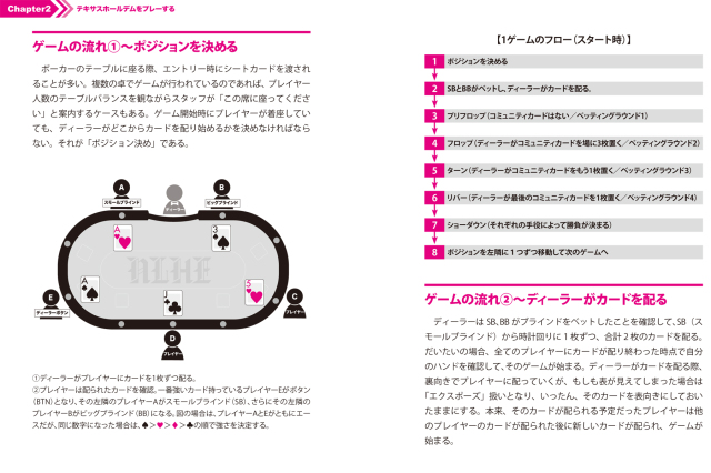 本書はこれから始めるための基礎知識から、よりゲームを楽しむためのピンポイントな情報までを、テキサスホールデムを知り尽くした筆者が、わかりやすく解説しています。