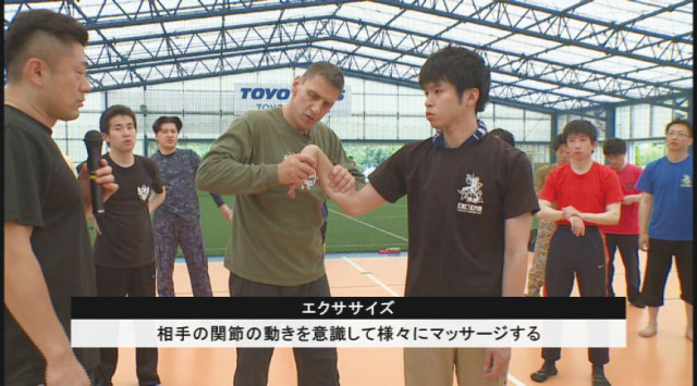 「相手との位置」をキーワードに「恐怖(テンション)」「ステップ」「距離・角度」「快適な状態でのストライクとナイフ・コントロール」を様々なアプローチによるエクササイズから学んでいきます。