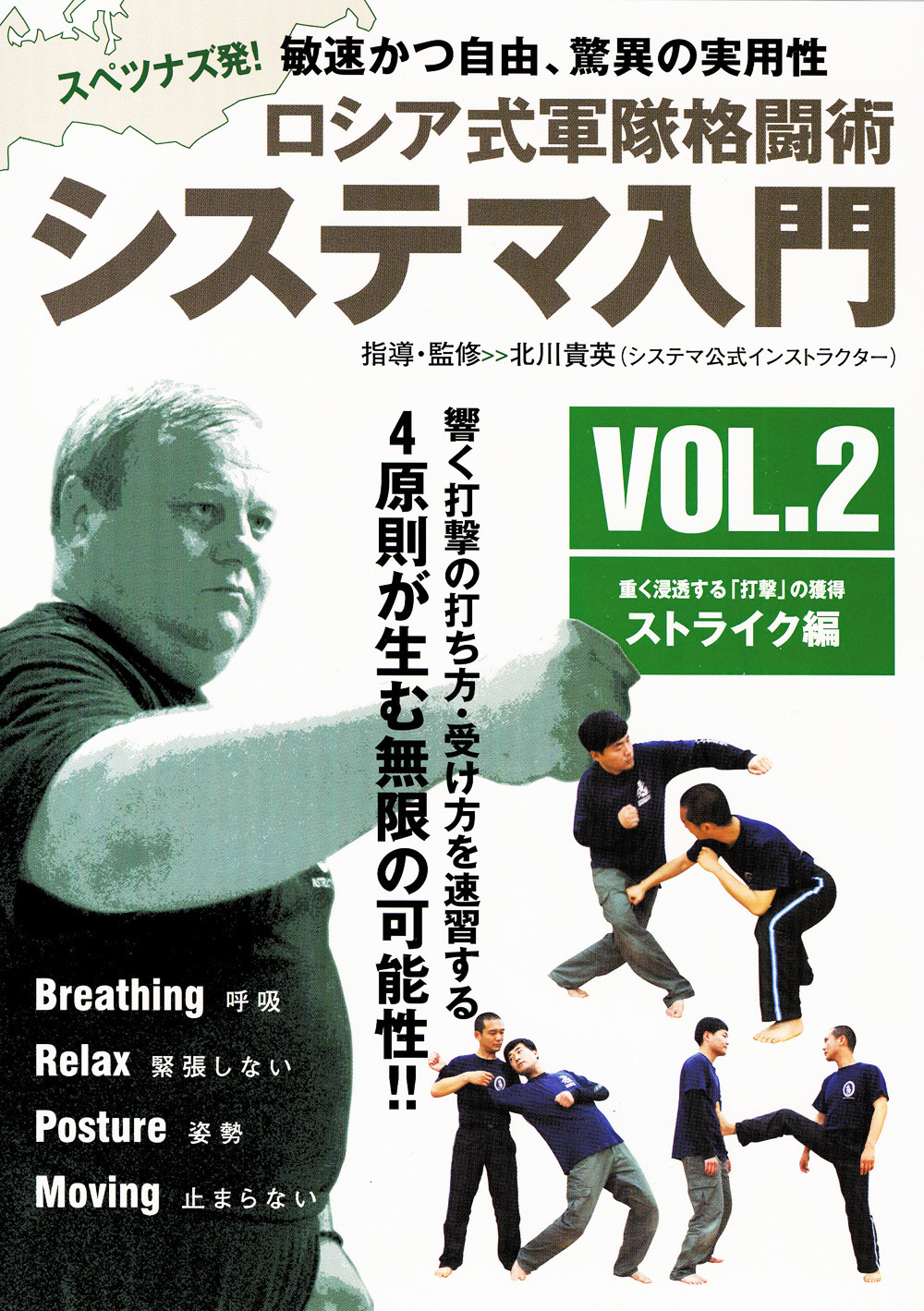 「古の武術の達人の再来か 明らかに質の違った動き!! かつてシステマインストラクターのDVDを観た時、このようなレベルの動きが出来る人間が存在することに驚嘆した。かつて私の主宰する会で武術を学び、会の解散後、運命の糸に導かれるようにして出会ったシステマに自らの生涯を託している筆者の処女作は、武術に関心を持つ人達には見逃せない一冊になると思う。」 ――武術家・甲野善紀」 日本人公認システマインストラクター・北川貴英による本邦初の入門書登場! ロシア軍特殊部隊“スペッナズ”で学ばれる格闘術「システマ」の基本ドリルから深い哲理までを解説した、待望の入門書が登場! 日本人インストラクター・北川貴英氏による分かりやすい文章と多数の図版は世界初の質とボリューム!武術・格闘技愛好者はもちろん、日常生活にもそのまま使えるメソッドを紹介しています。